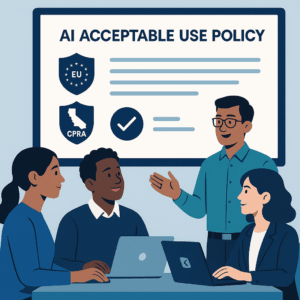 Copyable AI acceptable-use policy template that’s GDPR-aware and U.S. privacy-ready, with rollout steps and a risk matrix for RevOps.