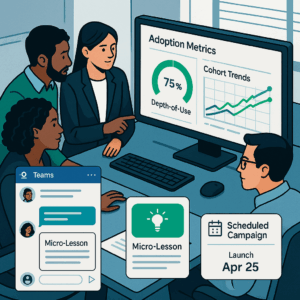 An LMS catalogs content. To change behavior you need targeted comms, in‑flow micro-lessons, and analytics that tie learning to business outcomes.
